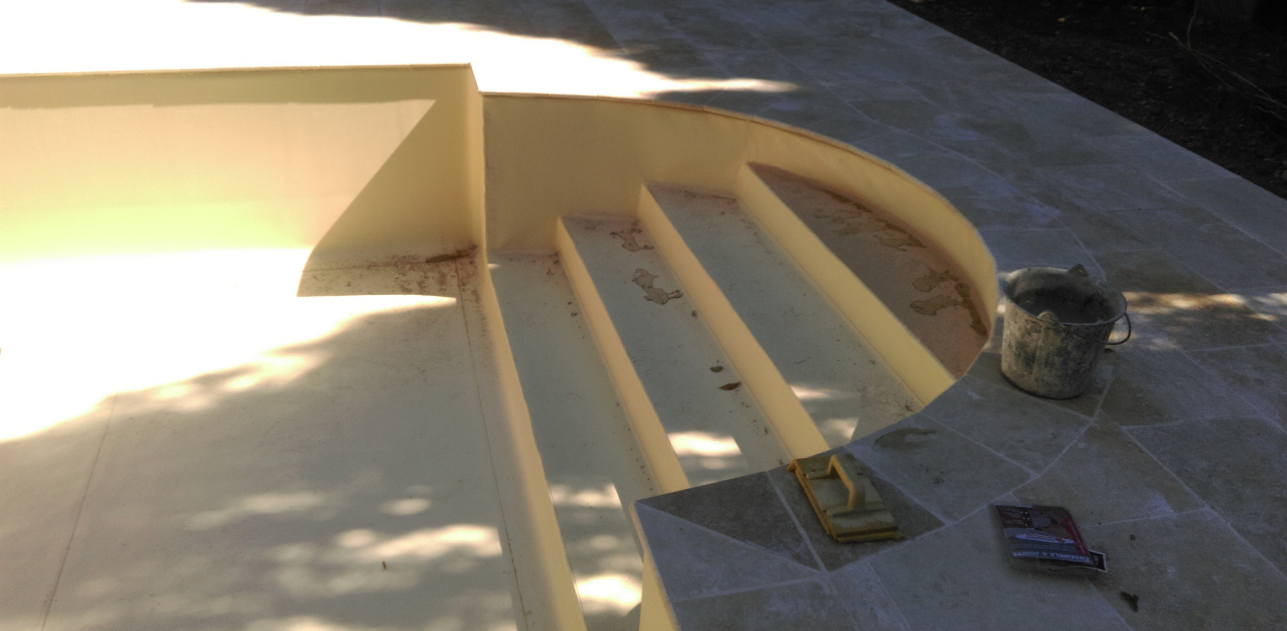 Puis remplacement du revêtement piscine par pvc beige
