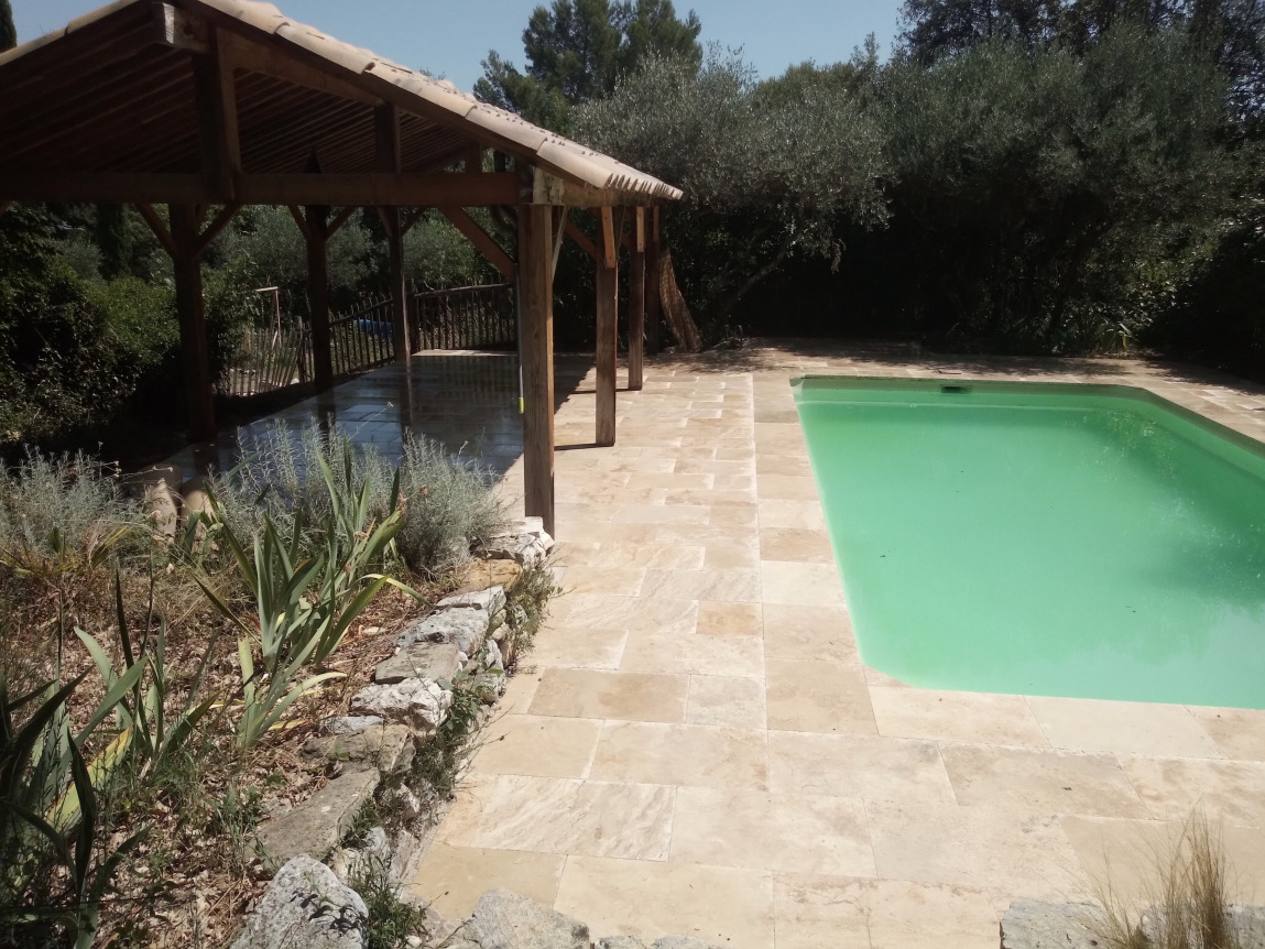 Déconstruction et construction pour une terrasse en pierre de travertin